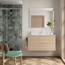 Meuble salle de bains et plan de toilette 90cm 2 tiroirs Chêne Africain NOJA - SALGAR 105505