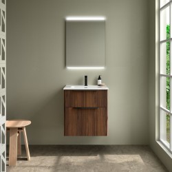 Ensemble Meuble Plan vasque et miroir SILANE 600 2 tiroirs Noyer Maya P450 - SALGAR 118026