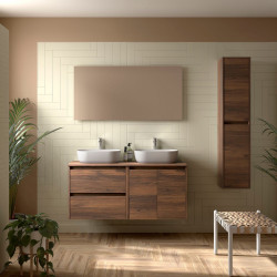 Meuble salle de bains 140cm 2 tiroirs 2 portes et miroir Noyer Maya NOJA - SALGAR 113437 Prix 870,26 € -21%