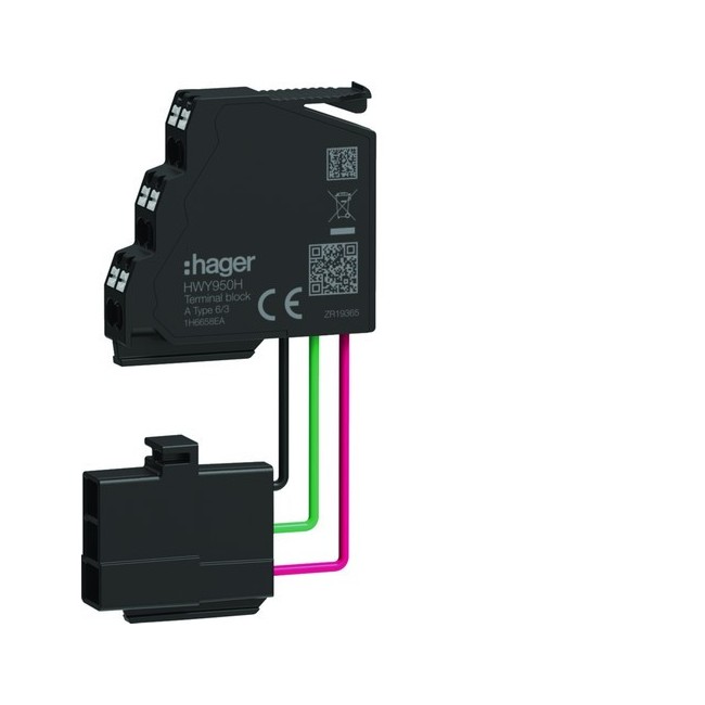Connecteur d'aux type A 6/3 pour AX, MO, FS, RTC, UV, SH, CC (pièce détachée) - HAGER HWY950HSA