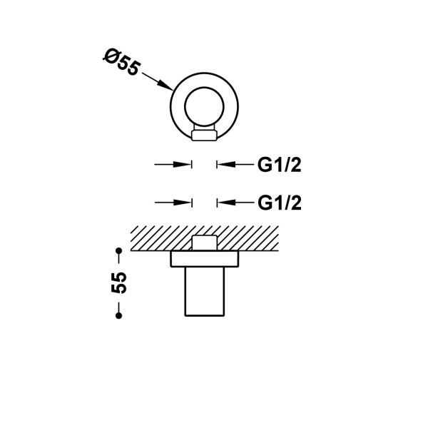 Coude avec prise murale pour flexible. Avec arrivée d'eau murale G1/2". Finition: BLACKMAT (noir mat).