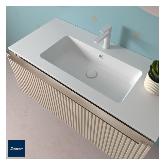 Meuble de salle de bain BIBA 60cm 1 tiroir White Cotton : Des meubles de salle de bain design 1 tiroir. Gamme : BIBA. Coloris White Cotton . Finition stratifié. Fermeture amortie. Poignées non inclues . Garantie de 5 ans. Fabriqué en Espagne. Poids 18.96kg. Largeur 60cm. Disponible en trois finitions : Macchiato et White Cotton et Noyer Maya . Cette collection de meubles de salle de bains expérimente de nouvelles textures . Ses façades usinées avec des rainures verticales créent un motif rythmique qui lui confère une impression de mouvement. La collection dispose également d'une colonne avec les mêmes façades et finitions que le meuble de salle de bains pour une combinaison parfaite.