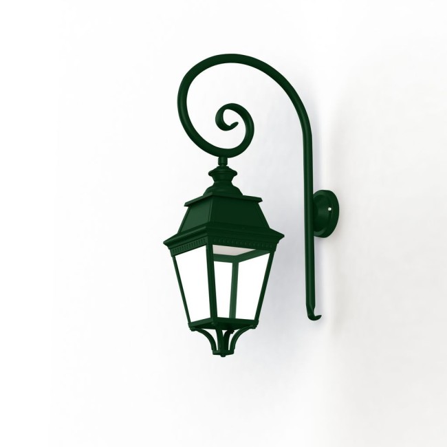 Applique crosse AVENUE 3 en aluminium, LED 35W 3000°K, IP44, classe 1, diffuseur verre clair. Teinte RAL 6009 Vert sapin 067. Garantie 25 ans anticorrosion sur l'aluminium