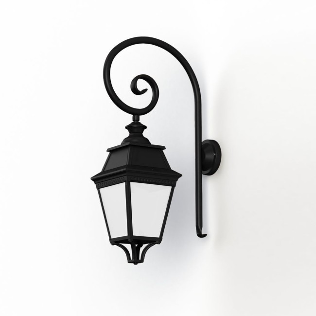 Applique crosse AVENUE 3 en aluminium, LED 35W 3000°K, IP44, classe 1, diffuseur méthacrylate opale. Teinte RAL 9005 Noir foncé 000. Garantie 25 ans anticorrosion sur l'aluminium