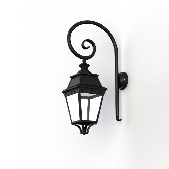 Applique crosse AVENUE 3 en aluminium, LED 35W 2700°K, IP44, classe 1, diffuseur verre clair. Teinte RAL 9005 Noir foncé 000. Garantie 25 ans anticorrosion sur l'aluminium