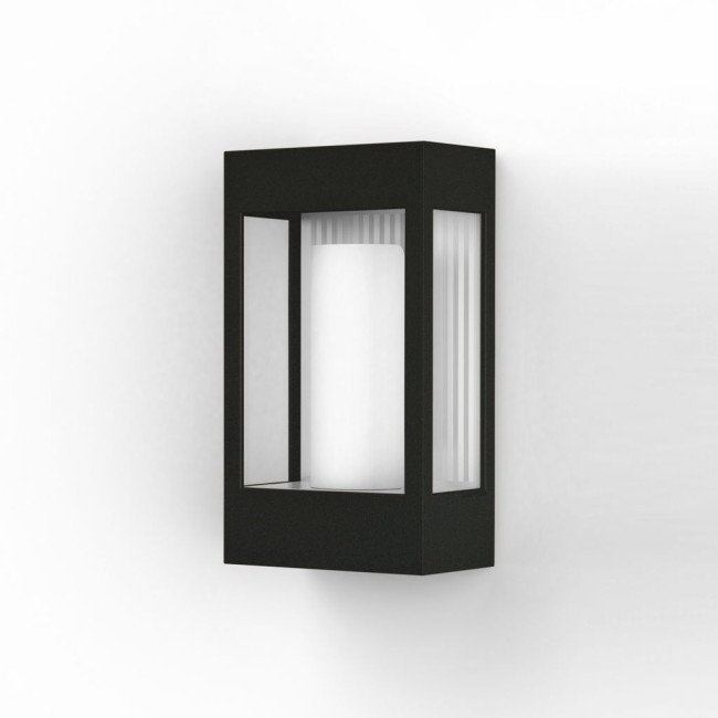 Applique BRICK², en aluminium, E27, IP44, classe 2, vitrage verre clair, diffuseur hémicylindrique satiné. Teinte RAL 7021 Gris noir 107. Garantie 25 ans anticorrosion sur l'aluminium
