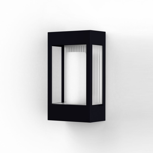 Applique BRICK², en aluminium, E27, IP44, classe 2, vitrage verre clair, diffuseur hémicylindrique satiné. Teinte Noir velours 113. Garantie 25 ans anticorrosion sur l'aluminium