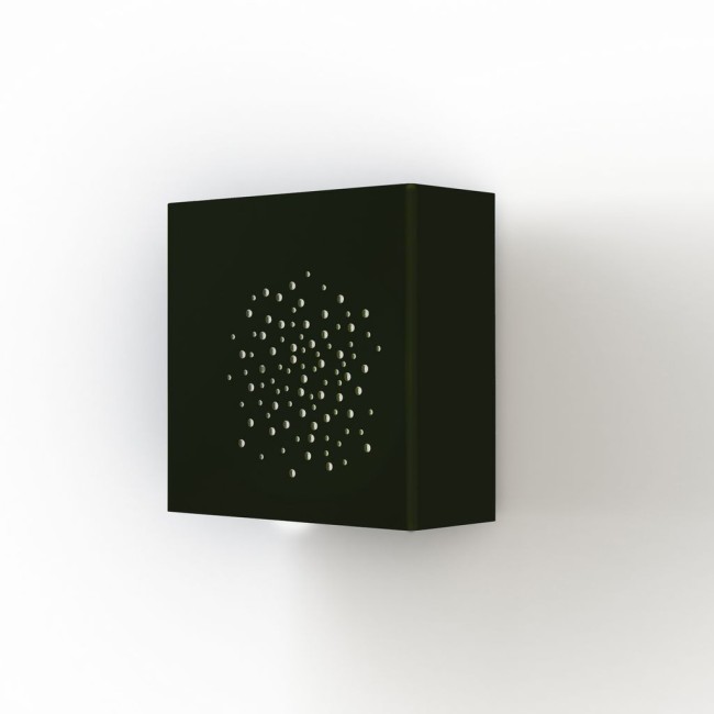 Applique Klint en aluminium, éclairage up & down, décor trous rétroéclairés, LED 2 x 2W 4000°K, IP65, classe 2, diffuseur méthacrylate clair. Teinte RAL 6009 Vert sapin 067. Garantie 25 ans anticorrosion sur l'aluminium