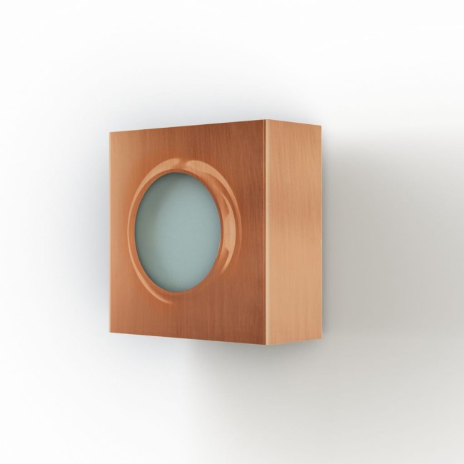 Applique KLINT, éclairage up & down, décor cercle rétroéclairé, LED 2 x 2W 4000°K, IP65, classe 2, diffuseur méthacrylate clair. Matière : cuivre brossé vernis 084