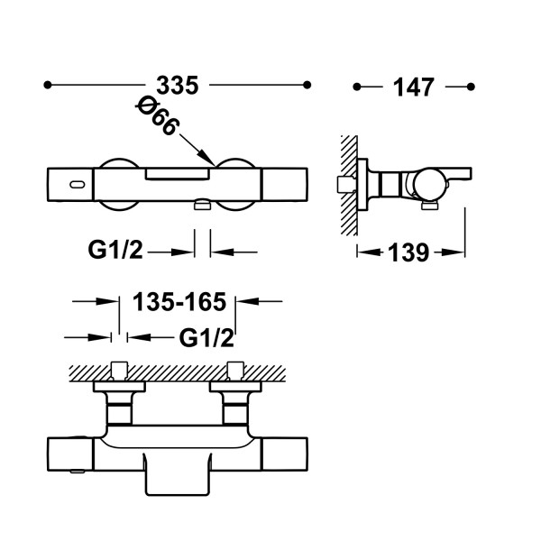 Robinet thermostatique mural pour baignoire et douche Douchette à main anticalcaire en laiton. Support orientable pour douchette à main. Flexible satin. Volant rond. Blanc mat