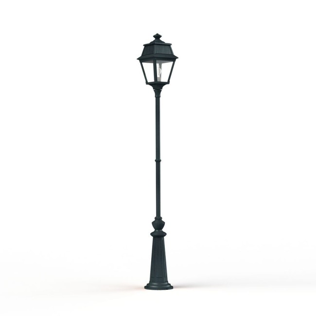 Lampadaire 1 tête AVENUE 2 en aluminium, E27, IP44, classe 1, diffuseurs verre clair. Finition Patine vert de gris 008. Garantie 25 ans anticorrosion sur l'aluminium