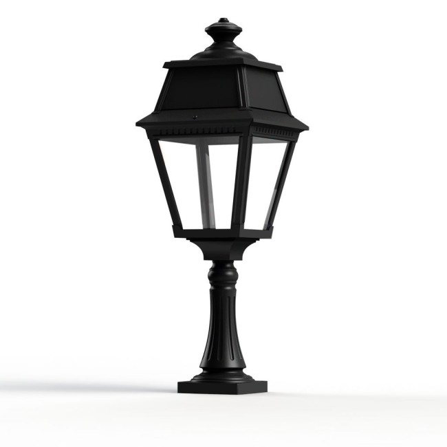 Borne AVENUE 2 en aluminium, LED 13W 2700°K, IP44, classe 1, diffuseurs verre clair. Teinte RAL 9005 Noir foncé 000. Garantie 25 ans anticorrosion sur l'aluminium