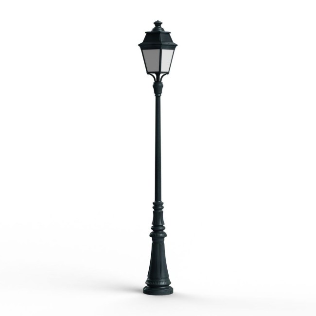 Lampadaire 1 tête AVENUE 3 en aluminium, LED 35W 3000°K, IP44, classe 1, diffuseur méthacrylate opale. Finition Patine vert de gris 008. Garantie 25 ans anticorrosion sur l'aluminium