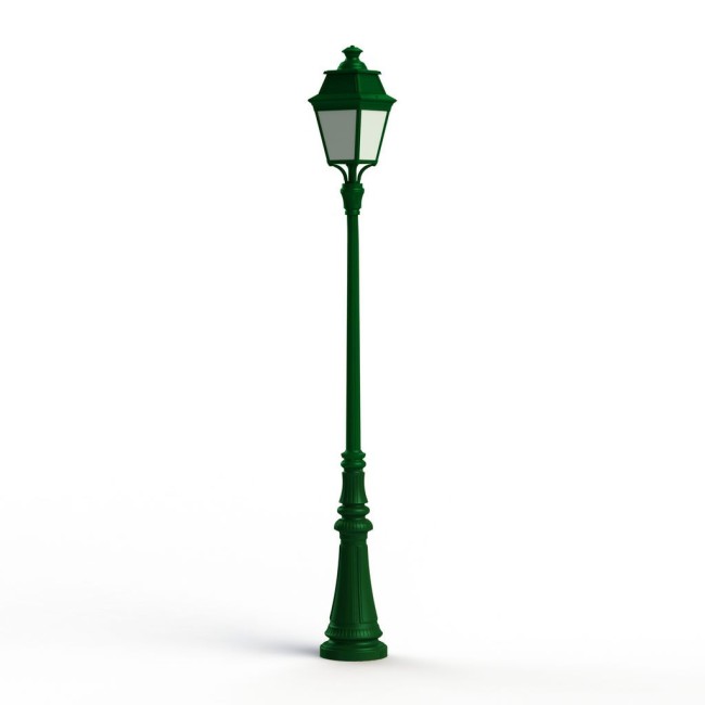 Lampadaire 1 tête AVENUE 3 en aluminium, LED 35W 3000°K, IP44, classe 1, diffuseur méthacrylate opale. Teinte RAL 6009 Vert sapin 067. Garantie 25 ans anticorrosion sur l'aluminium