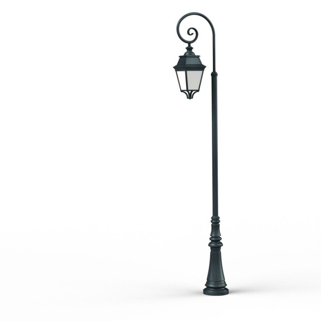 Lampadaire crosse AVENUE 3 en aluminium, LED 35W 3000°K, IP44, classe 1, diffuseur méthacrylate opale. Finition Patine vert de gris 008. Garantie 25 ans anticorrosion sur l'aluminium