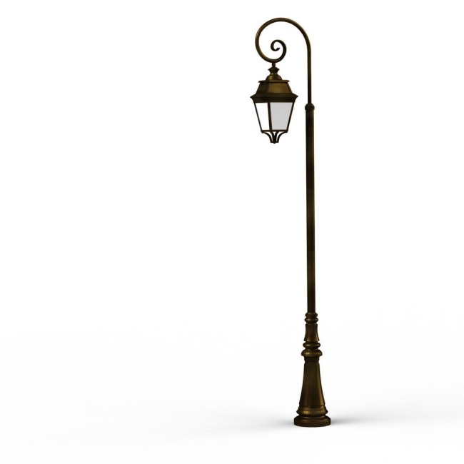 Lampadaire crosse AVENUE 3 en aluminium, LED 35W 3000°K, IP44, classe 1, diffuseur méthacrylate opale. Finition Patine dorée 009. Garantie 25 ans anticorrosion sur l'aluminium