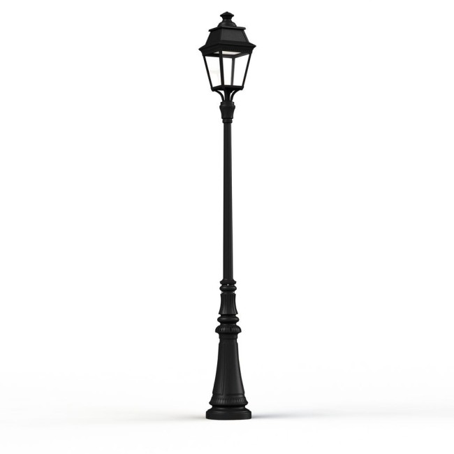 Lampadaire 1 tête AVENUE 3 en aluminium, LED 35W 2700°K, IP44, classe 1, diffuseur verre clair. Teinte RAL 9005 Noir foncé 000. Garantie 25 ans anticorrosion sur l'aluminium