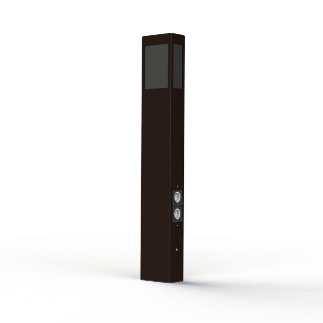 Borne BRICK² hauteur 1100mm avec 2 prises FR, en aluminium, E27, IP44, classe 2, vitrage PMMA noir. Teinte Rouille 046. Garantie 25 ans anticorrosion sur l'aluminium