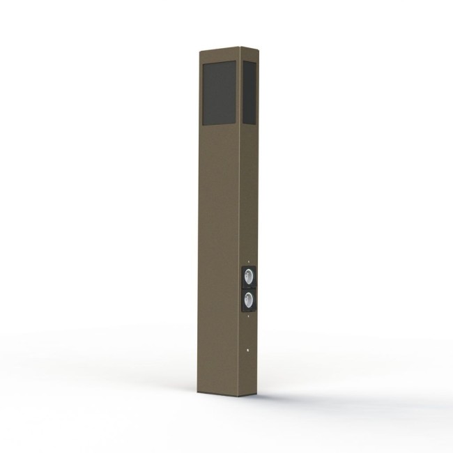 Borne BRICK² hauteur 1100mm avec 2 prises FR, en aluminium, E27, IP44, classe 2, vitrage PMMA noir. Teinte Grès 054. Garantie 25 ans anticorrosion sur l'aluminium