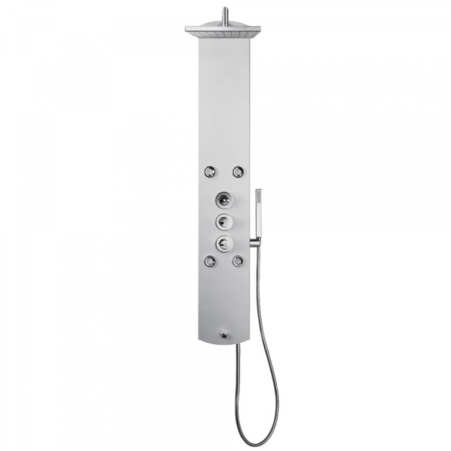 Colonne de douche thermostatique LEX‑B · Douchette douche fixe de 250x250 mm. à rotule. (1.34.138.26). · Douchette anticalcaire. · Flexo satin (91.34.609.15). - TRES 193124