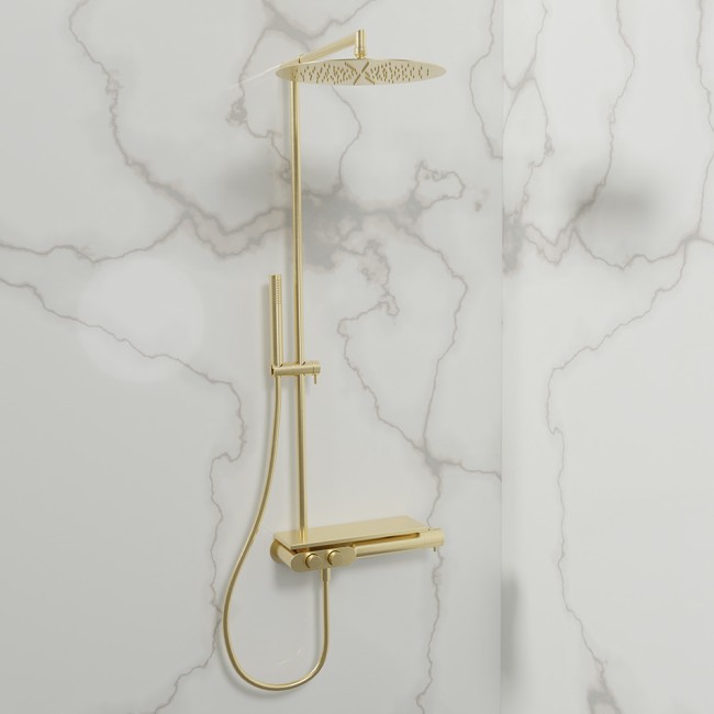 Colonne de douche or brossé avec réglage thermostatique Thermo up, bras fixe,