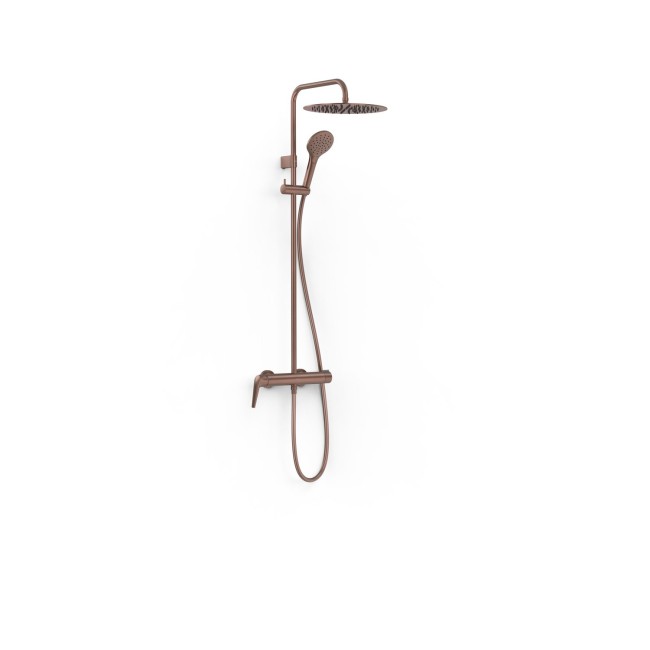 Ensemble mitigeur mural à 2 voies pour douche · Avec inverseur intégré. · Pommeau de douche orientable en acier inoxydable : Ø 300 mm. · Support coulissant et orientable pour douchette à main. · Douchette à main anticalcaire : Ø 110 mm. (3 fonctions). · Flexible satin.