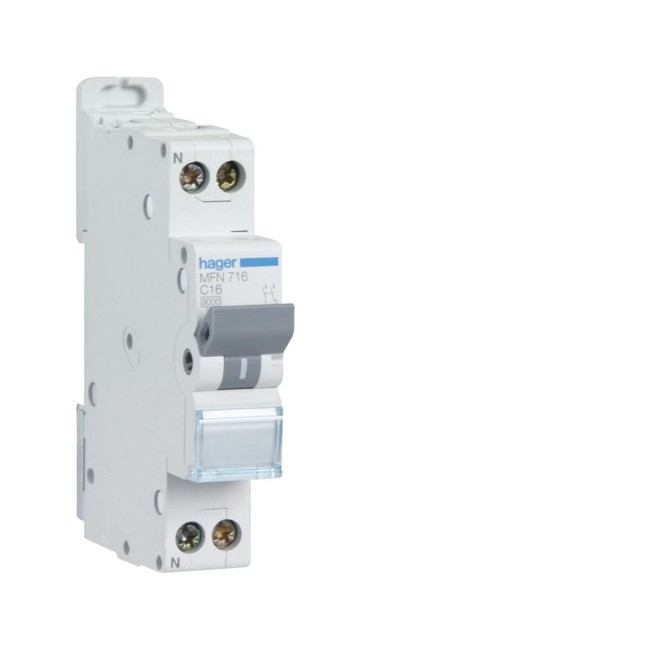 Disjoncteur 1P+N 3kA C16A 1M - DISJONCTEURS PH+N HAGER MFN716 PROTECTION HABITAT - DISJ. PH+N 3KA C