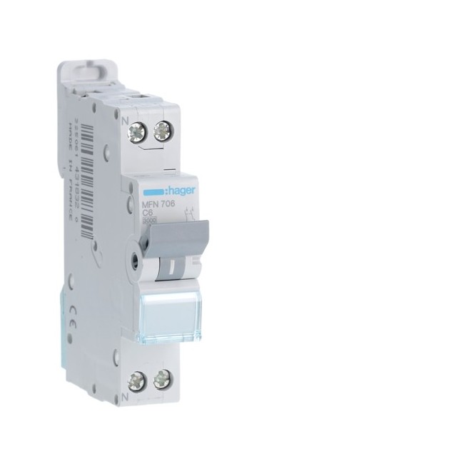 Disjoncteur 1P+N 3kA C6A 1M - DISJONCTEURS PH+N HAGER MFN706 PROTECTION HABITAT - DISJ. PH+N 3KA C