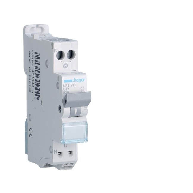 Disj. 1P+N 3kA C10A SanVis 1M - DISJONCTEURS PH+N HAGER MFS710 PROTECTION HABITAT - DISJ PH/N 3KA C SVIS