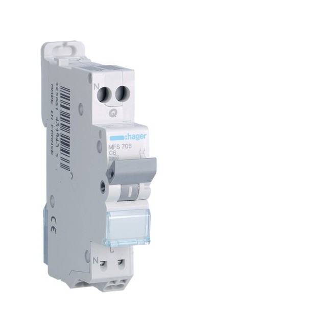 Disj. 1P+N 3kA C6A SanVis 1M - DISJONCTEURS PH+N HAGER MFS706 PROTECTION HABITAT - DISJ PH/N 3KA C SVIS
