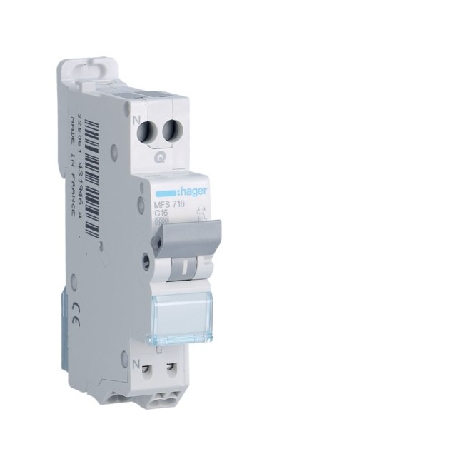 Disj. 1P+N 3kA C16A SanVis 1M - DISJONCTEURS PH+N HAGER MFS716 PROTECTION HABITAT - DISJ PH/N 3KA C SVIS