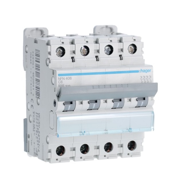 Disj.4P 6-10kA C-6A 4m - DISJONCTEURS MULTI. HAGER NFN406 PROTECTION TERTIAIRE - DISJ MULTI.6KA C