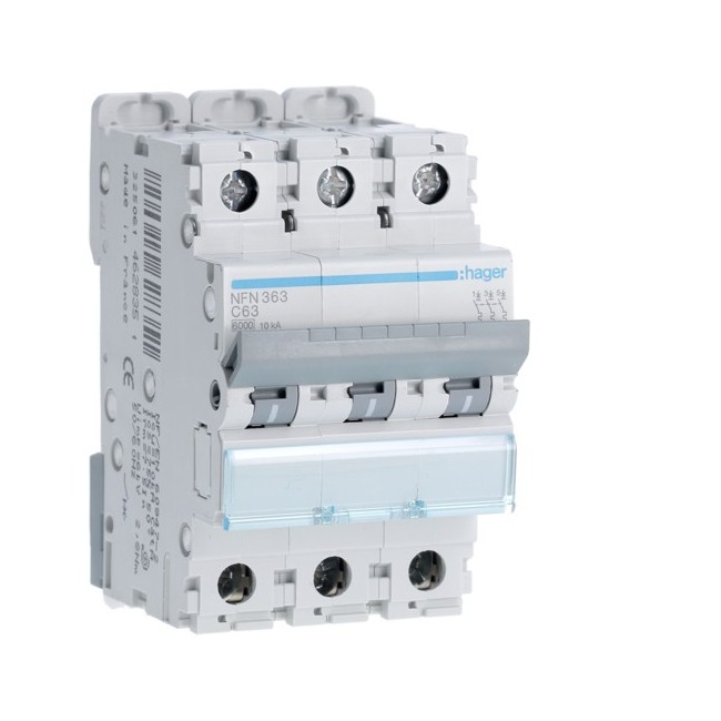 Disj.3P 6-10kA C-63A 3m - DISJONCTEURS MULTI. HAGER NFN363 PROTECTION TERTIAIRE - DISJ MULTI.6KA C