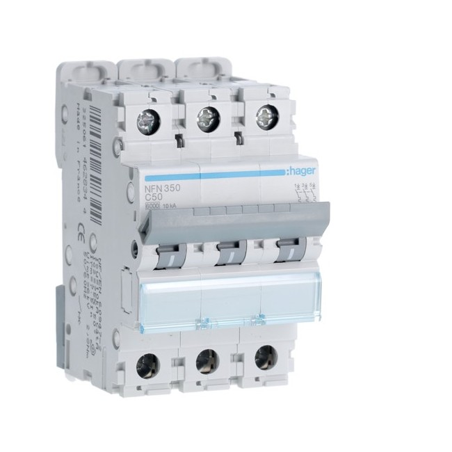 Disj.3P 6-10kA C-50A 3m - DISJONCTEURS MULTI. HAGER NFN350 PROTECTION TERTIAIRE - DISJ MULTI.6KA C