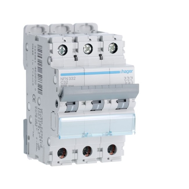 Disj.3P 6-10kA C-32A 3m - DISJONCTEURS MULTI. HAGER NFN332 PROTECTION TERTIAIRE - DISJ MULTI.6KA C