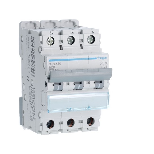 Disj.3P 6-10kA C-20A 3m - DISJONCTEURS MULTI. HAGER NFN320 PROTECTION TERTIAIRE - DISJ MULTI.6KA C