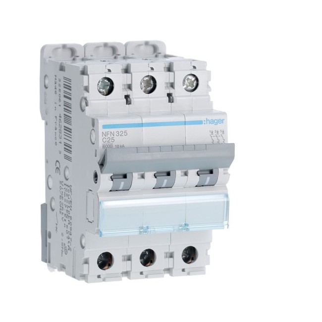 Disj.3P 6-10kA C-25A 3m - DISJONCTEURS MULTI. HAGER NFN325 PROTECTION TERTIAIRE - DISJ MULTI.6KA C