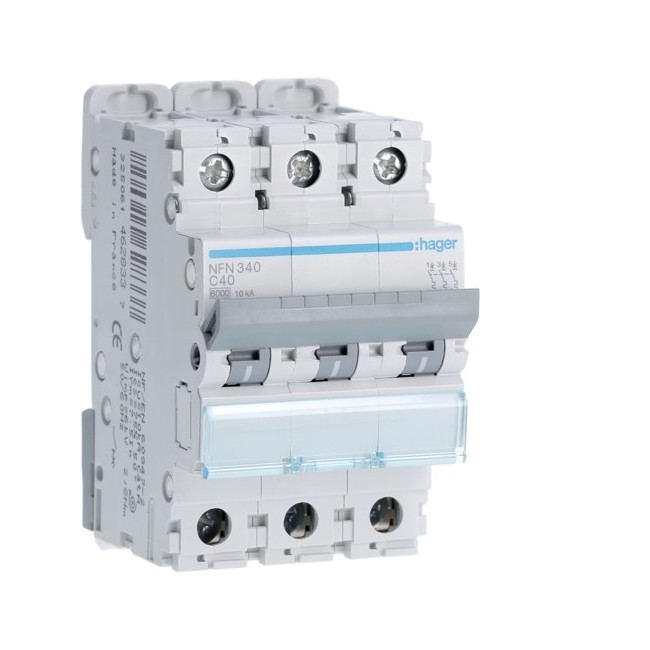 Disj.3P 6-10kA C-40A 3m - DISJONCTEURS MULTI. HAGER NFN340 PROTECTION TERTIAIRE - DISJ MULTI.6KA C