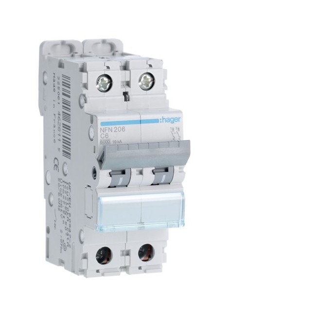 Disj.2P 6-10kA C-6A 2m - DISJONCTEURS MULTI. HAGER NFN206 PROTECTION TERTIAIRE - DISJ MULTI.6KA C