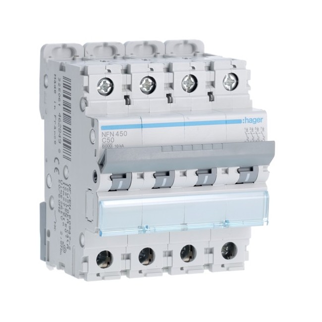 Disj.4P 6-10kA C-50A 4m - DISJONCTEURS MULTI. HAGER NFN450 PROTECTION TERTIAIRE - DISJ MULTI.6KA C
