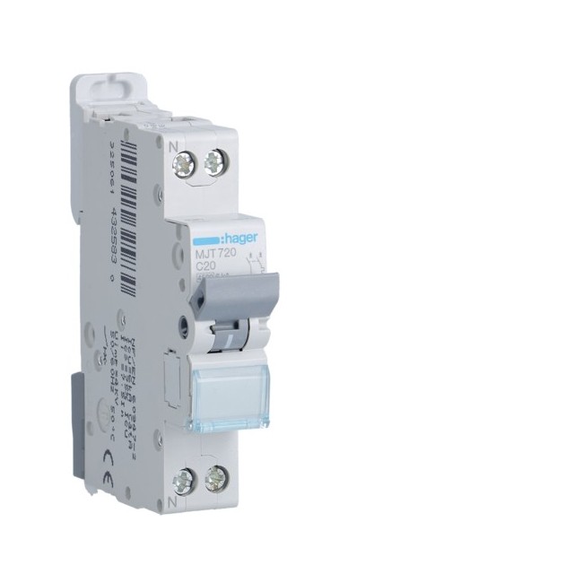 Disj.1P+N 4.5-6kA C-20A 1m - DISJONCTEURS PH+N HAGER MJT720 PROTECTION TERTIAIRE - DISJ. PH+N 4,5KA C
