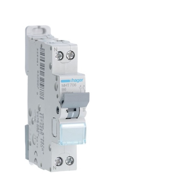 Disj.1P+N 4.5-6kA B-6A 1m - DISJONCTEURS PH+N HAGER MHT706 PROTECTION TERTIAIRE - DISJ. PH+N 4,5KA B