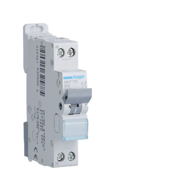 Disj.1P+N 4.5-6kA B-10A 1m - DISJONCTEURS PH+N HAGER MHT710 PROTECTION TERTIAIRE - DISJ. PH+N 4,5KA B