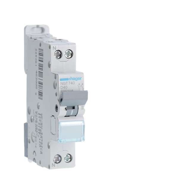 Disj.1P+N 6-10kA D-40A 1m - DISJONCTEURS PH+N HAGER NGT740 PROTECTION TERTIAIRE - DISJ. PH+N 6KA D