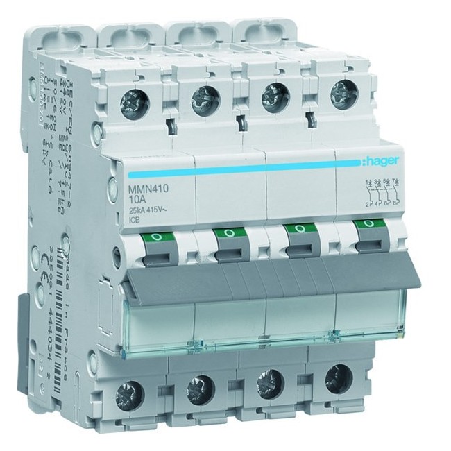 Disjoncteur magnétique 4P 25kA 10A 400V access. indicateur IEC 947-2 - HAGER MMN410