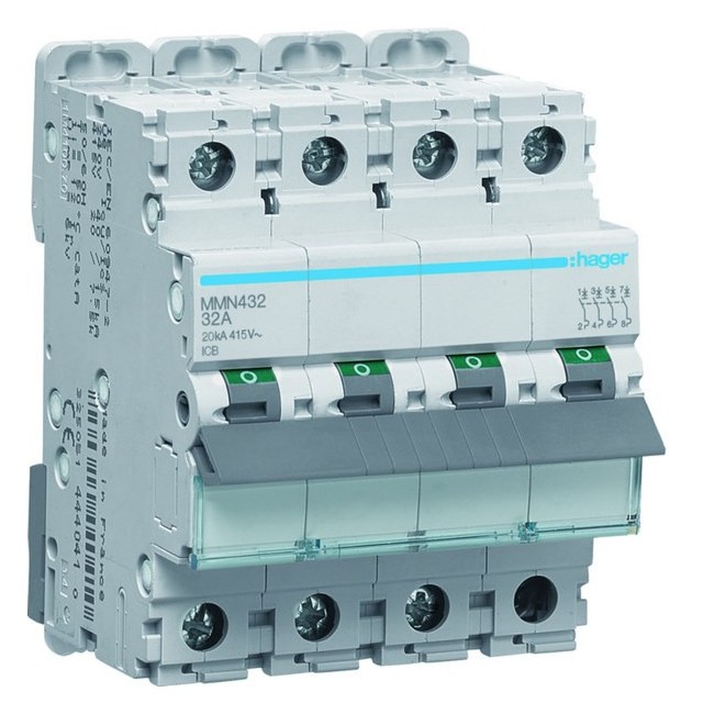 Disjoncteur magnétique 4P 20kA 32A 400V access. indicateur IEC 947-2 - HAGER MMN432