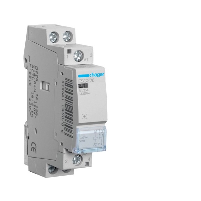 Contact 25A, 2O, 230V - AUTOMATISMES HAGER ESC226 AUTOMATISME HABITAT - CONTACT. SS COM.MANU