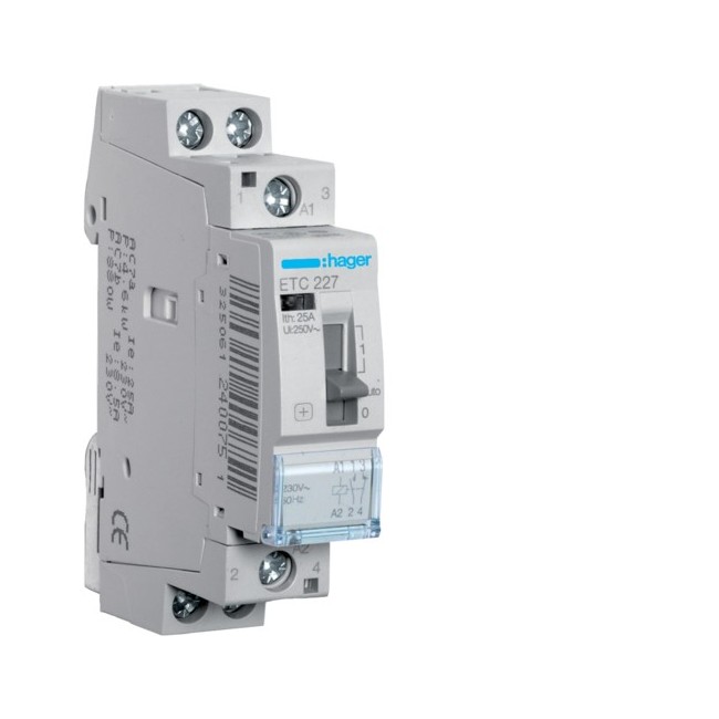 Contact J/N 25A, 1F+1O, 230V - AUTOMATISMES HAGER ETC227 AUTOMATISME HABITAT - CONTACTEURS J-N