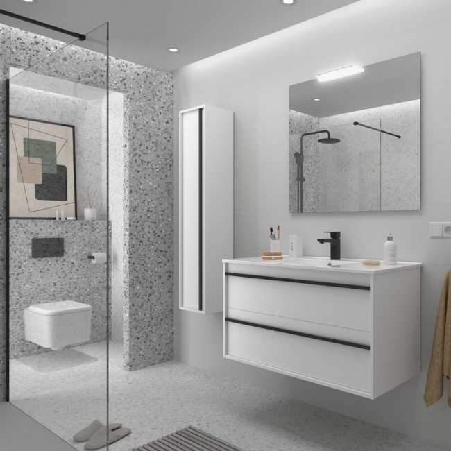 Ensemble meuble vasque salle de bain ATTILA 1000 2 tiroirs Blanc satiné P450 - SALGAR 104723