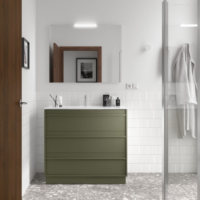 Ensemble meuble vasque salle de bain ATTILA 1000 3 tiroirs Green satin P450 - SALGAR 105123